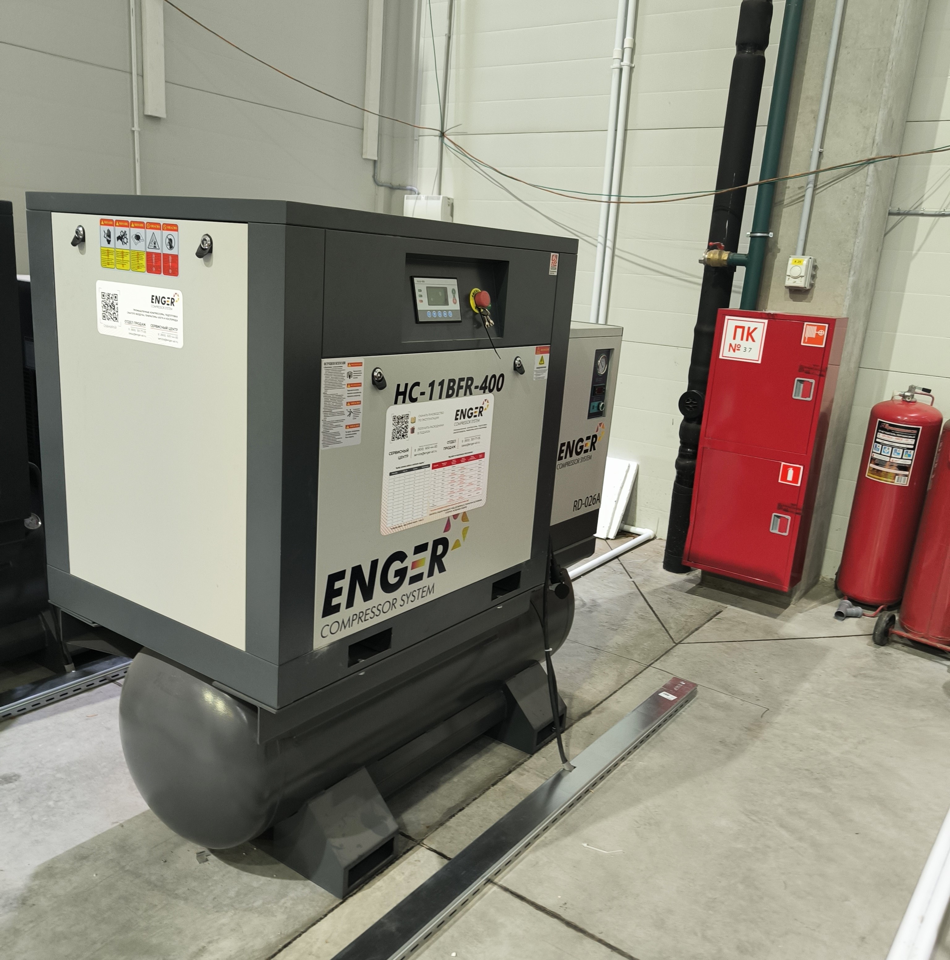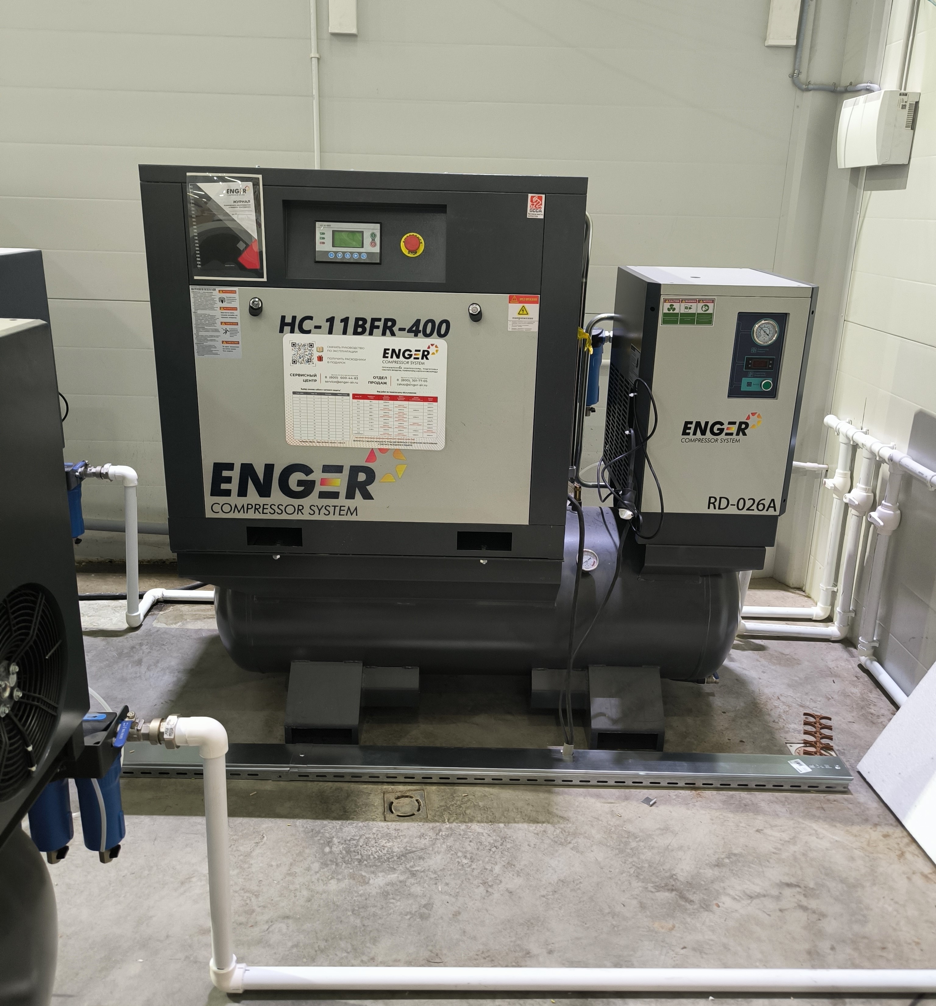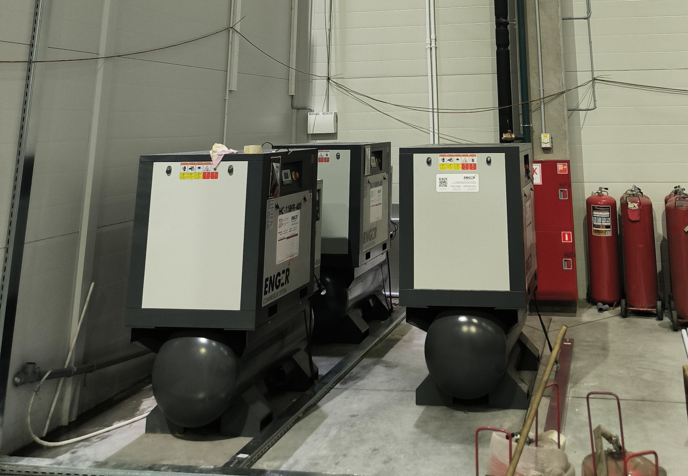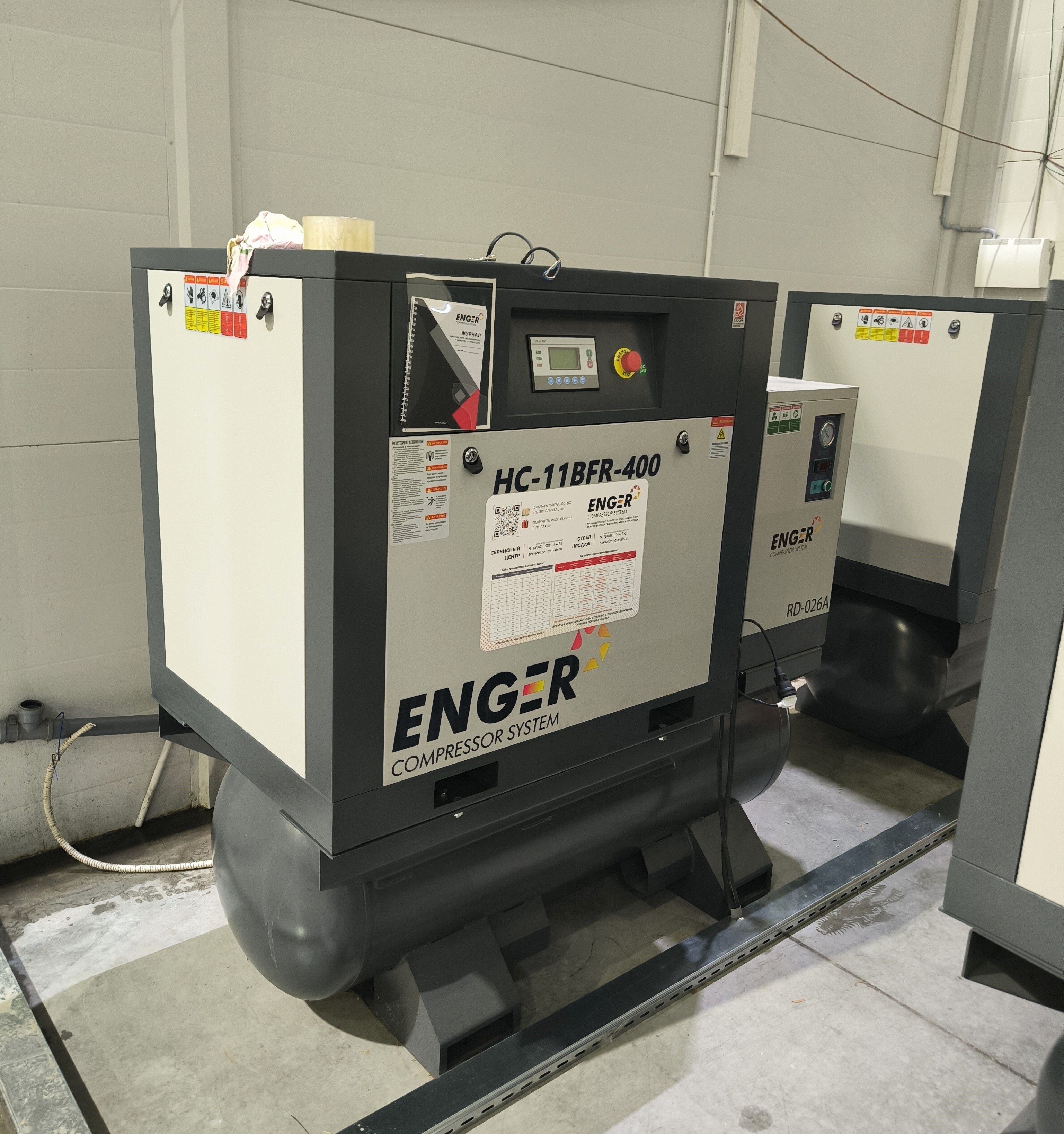 Компания ООО «ЮРАЛ» приобрела три компрессора Enger HC-11BFR-400 10 — это высокопроизводительные, маслонаполненные винтовые компрессоры мощностью 11 кВт, производительностью 1500 л/мин (1,5 м³/мин) и давлением 10 бар, установленные для обеспечения стабильной подачи сжатого воздуха в условиях автосервиса и розничной торговли автотранспортными средствами.